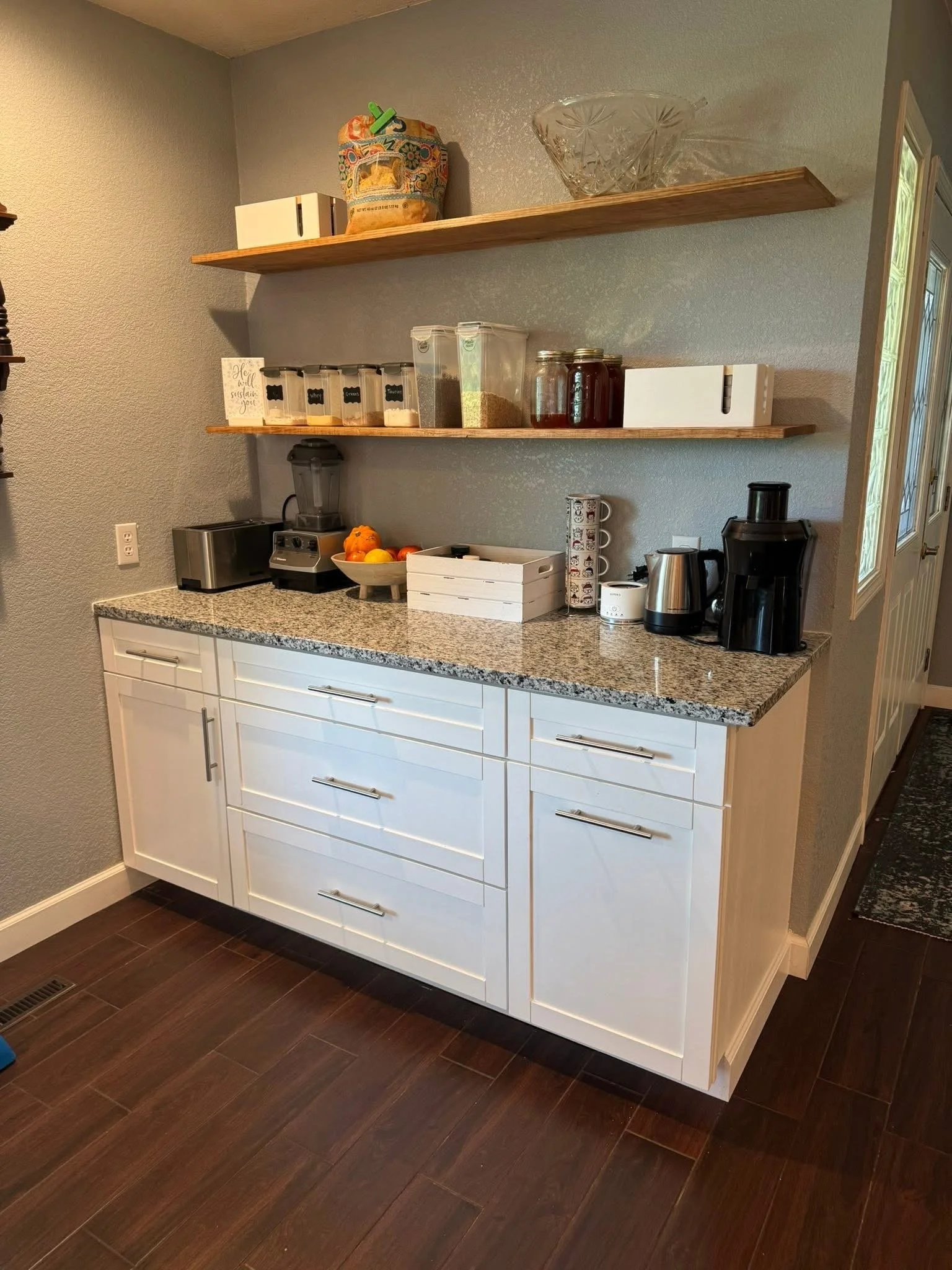 “From random cabinet asymmetrically on a wall to our new coffee bar - I’m loving it. Huge thank you to Big Kahuna Customs for building this piece quickly and affordably!” ~ Rachel S.